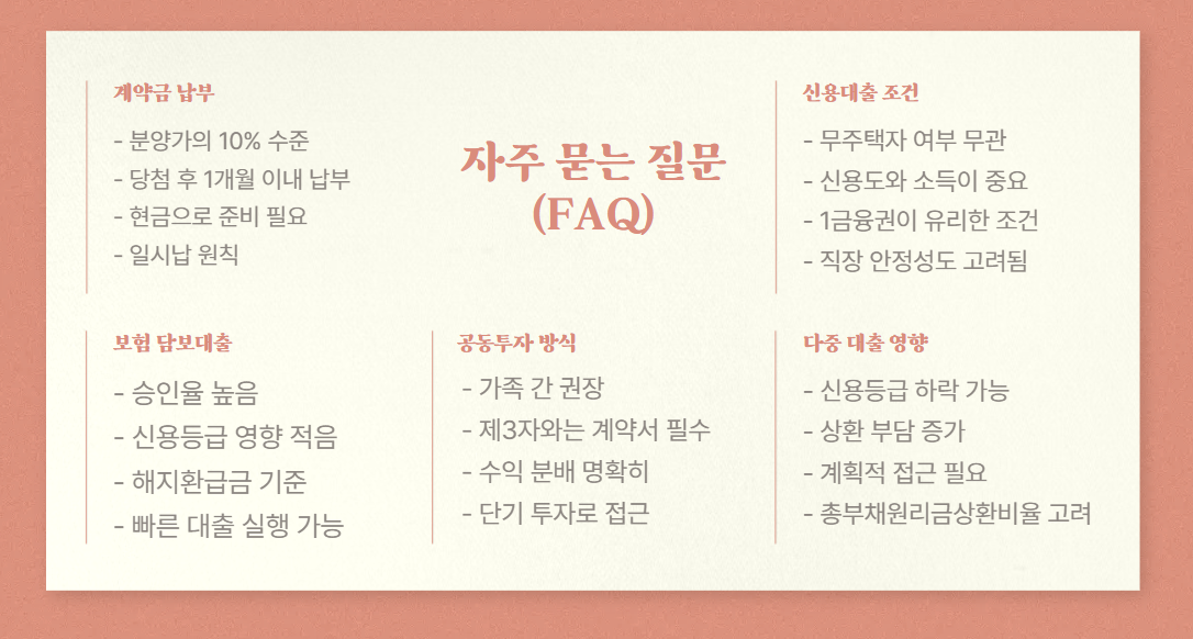 A. 담보가 명확하기 때문에 승인율이 매우 높은 편이며, 신용등급 영향도 적습니다. - Q. 공동투자 방식으로 계약금을 마련해도 괜찮을까요?