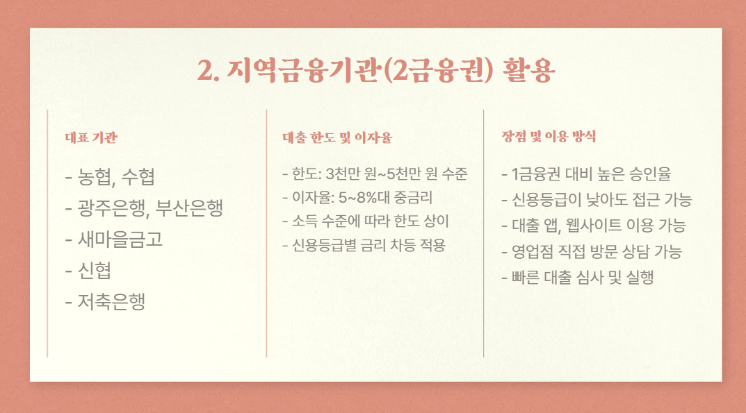 2. 지역금융기관(2금융권) 또는 저축은행 이용